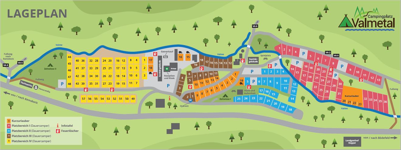 Hier liegt, ganz idyllisch am Flusslauf der Valme, umgeben von Wiesen und Wäldern, direkt am Fuße des Rothaargebirges unser familiär geführter Campingplatz. Genießen sie die naturbelassene Landschaft, die klare Luft und die herrliche Ruhe.